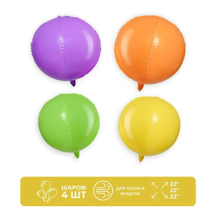 Воздушные шары полимерные 22" «Разноцветный», 4 шт., МИКС — Характеристики