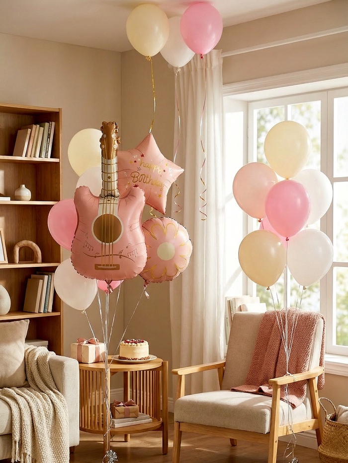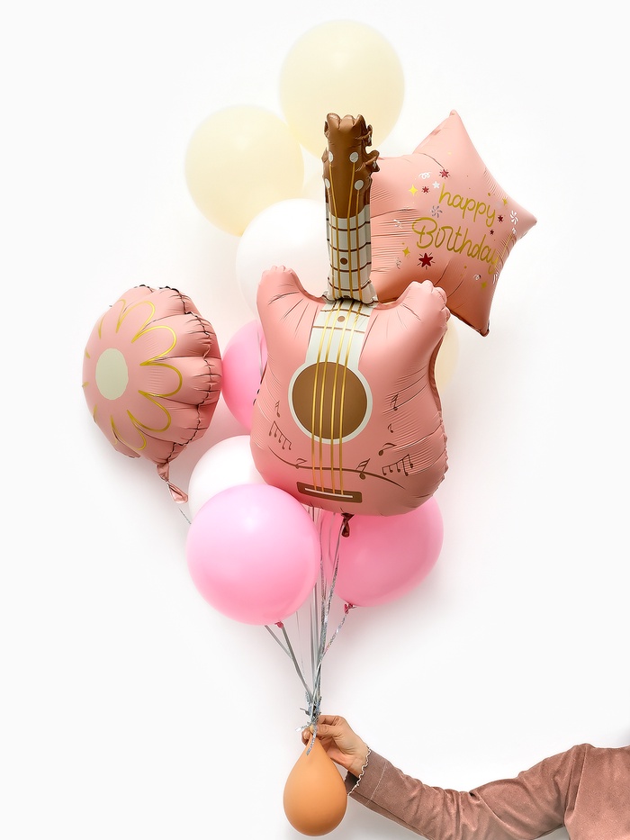 Воздушные шары "Розовая гитара" фольга, латекс, набор 12 штук — Характеристики