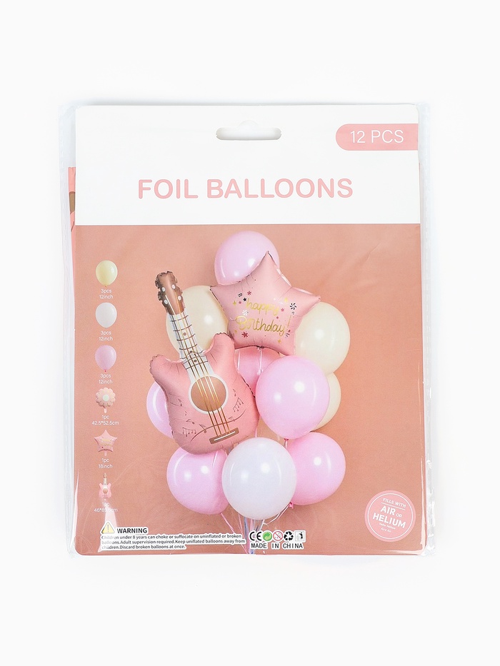 Воздушные шары "Розовая гитара" фольга, латекс, набор 12 штук