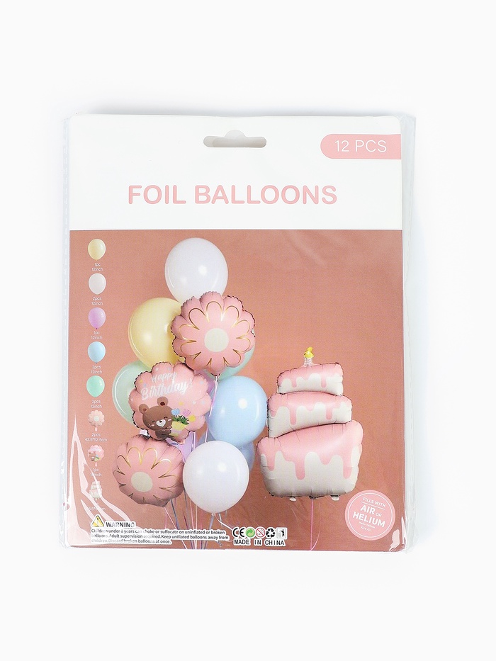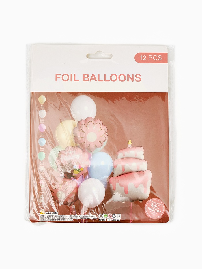 Воздушные шары "Розовый тортик" фольга, латекс, набор 12 штук