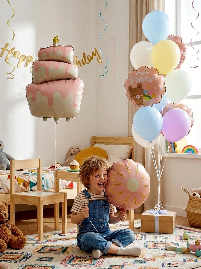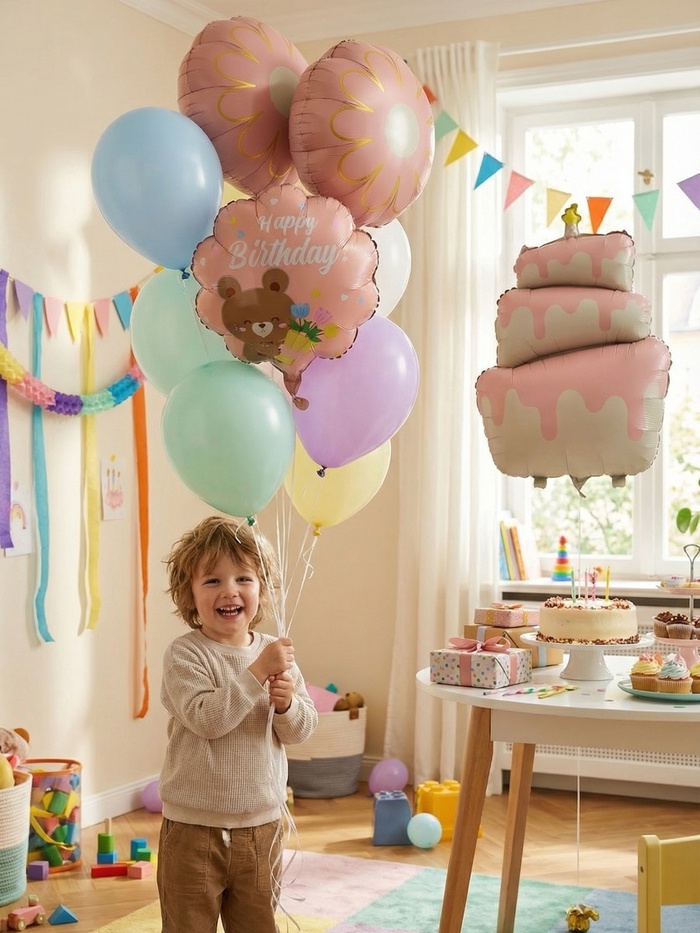 Воздушные шары "Розовый тортик" фольга, латекс, набор 12 штук — Характеристики