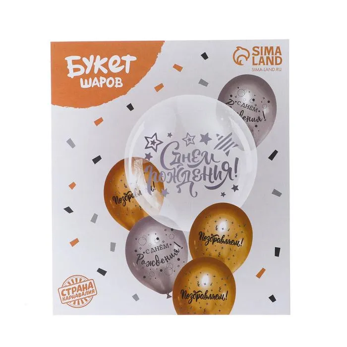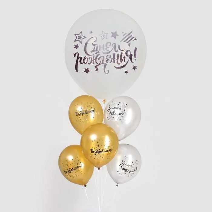 Воздушные шары «С днём рождения», наклейка, открытка, 12", 20", набор 6 шт. — Характеристики