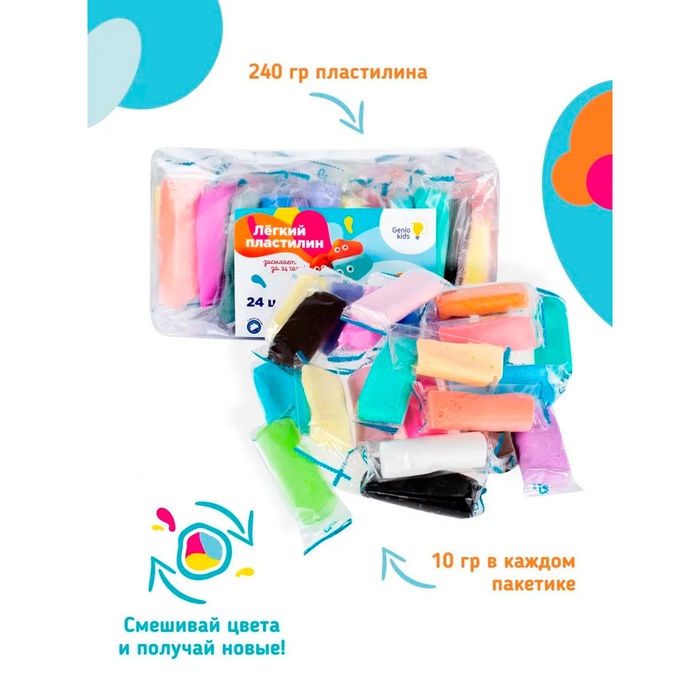 Воздушный пластилин, 24 цвета по 10 г — Характеристики