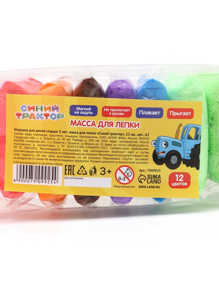 Воздушный пластилин «Синий Трактор», 12 цветов — Характеристики