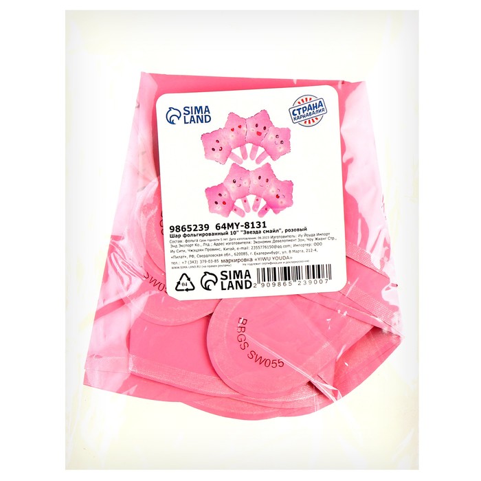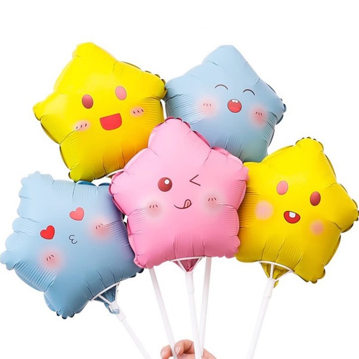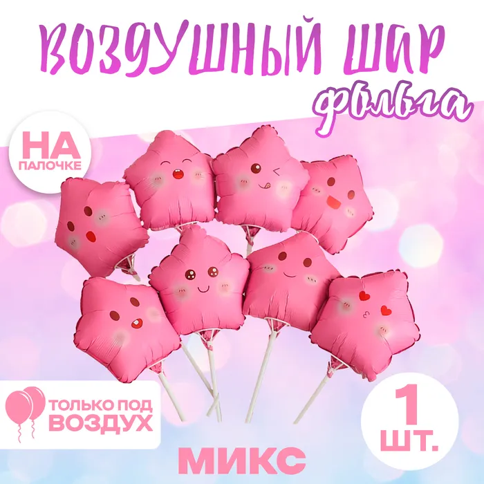 Воздушный шар фольгированный 10" «Звезда смайл», для палочки, МИКС — Характеристики