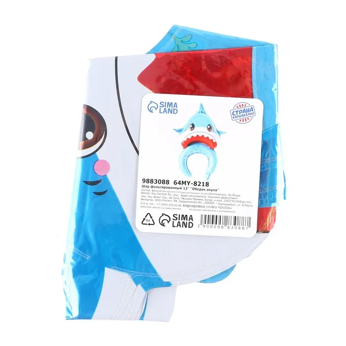 Воздушный шар фольгированный 12" «Ободок-акула» — Характеристики