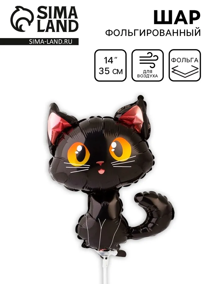 Воздушный шар фольгированный 14" «Кот чёрный», для палочки — Характеристики