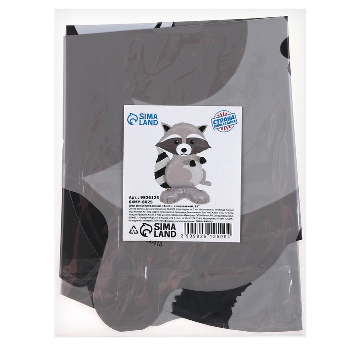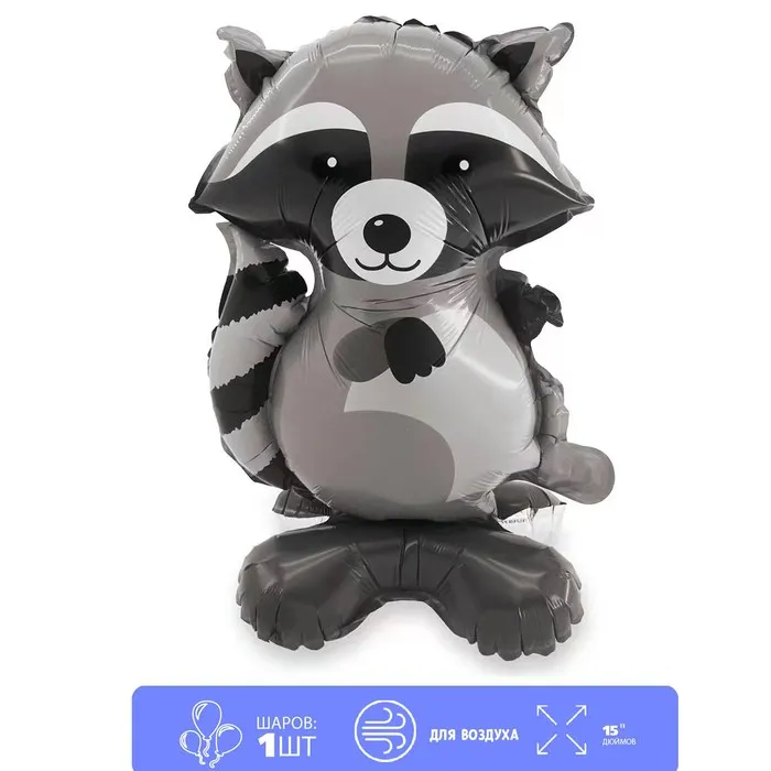 Воздушный шар фольгированный 15" «Енот», на подставке, под воздух — Характеристики