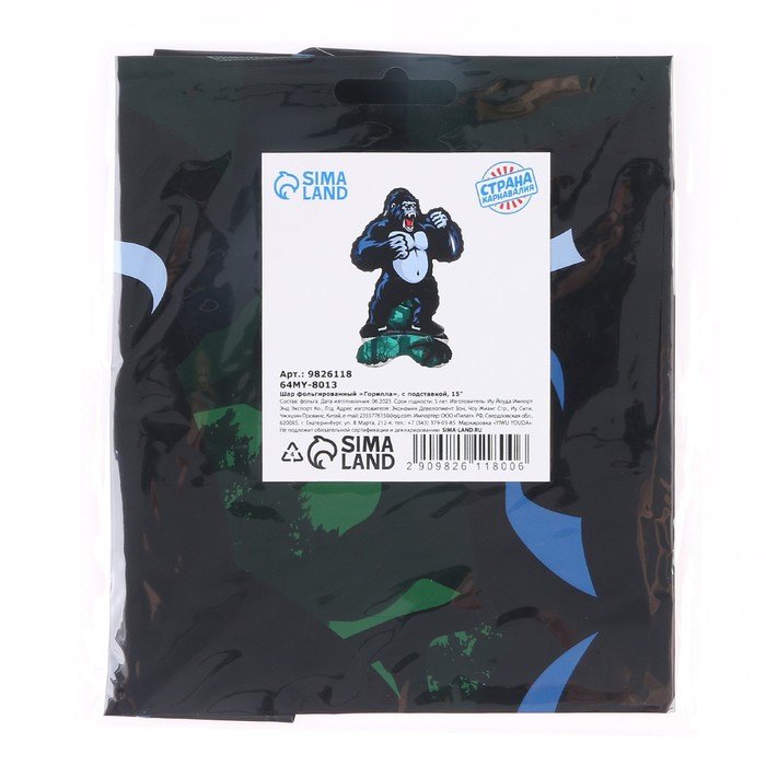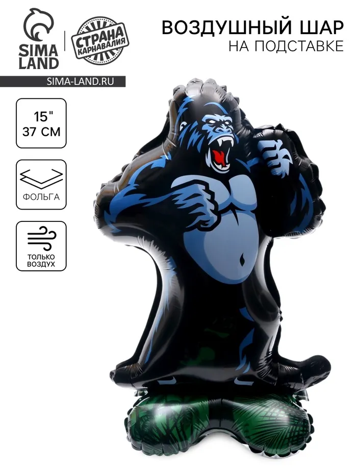 Воздушный шар фольгированный 15" «Горилла», на подставке, под воздух — Характеристики