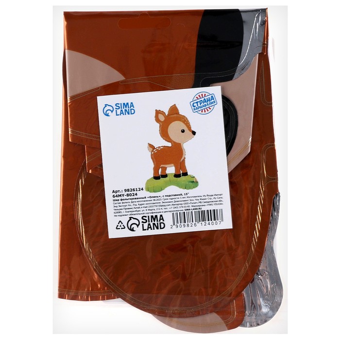 Воздушный шар фольгированный 15" «Олень», на подставке, под воздух — Характеристики