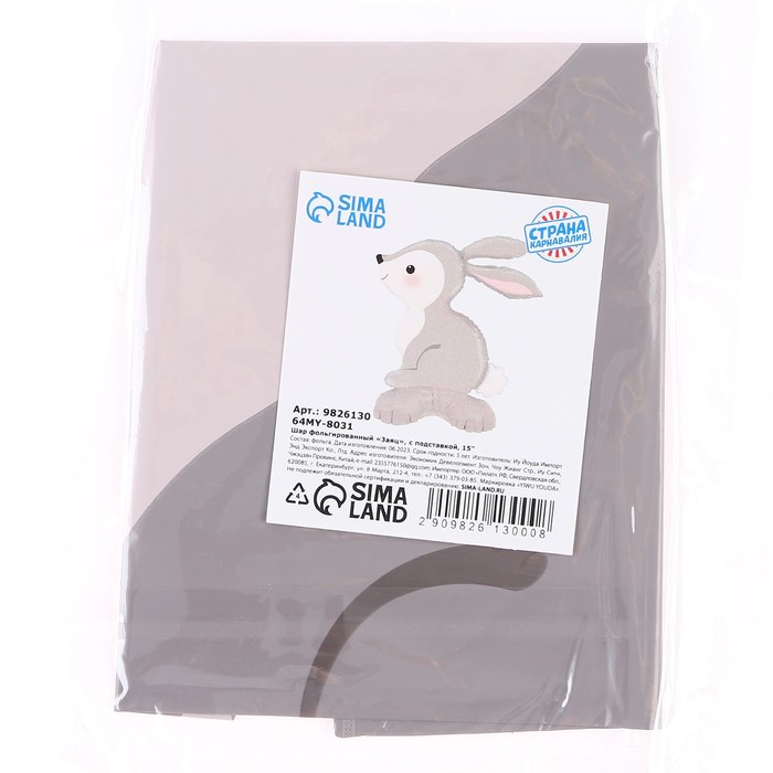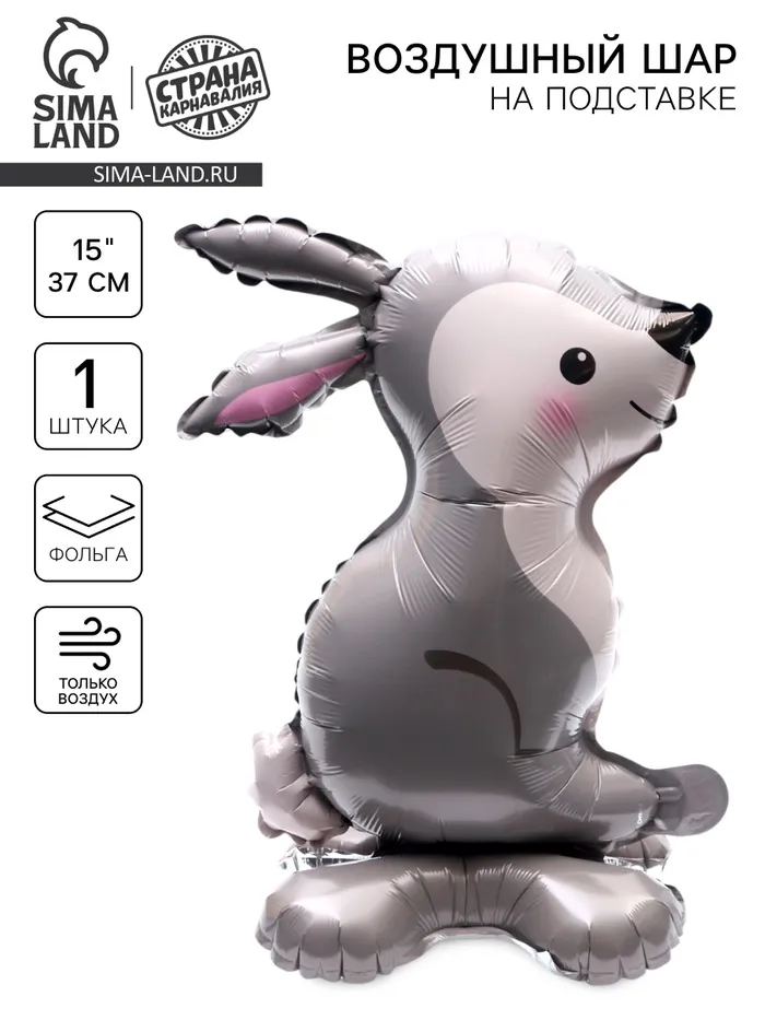 Воздушный шар фольгированный 15" «Заяц», на подставке, под воздух — Характеристики