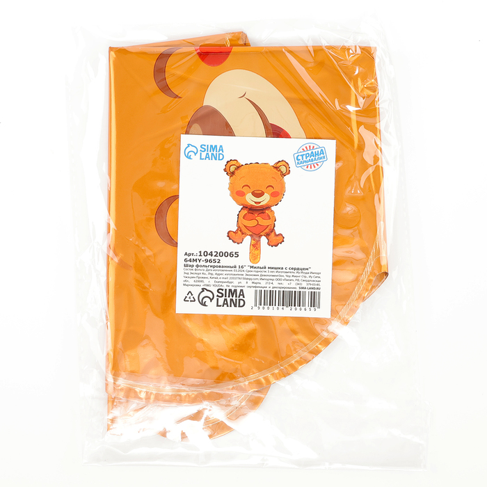 Воздушный шар фольгированный 16" «Мишка с сердцем», фигура, для палочки — Характеристики