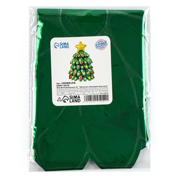 Воздушный шар фольгированный 16" «Объёмная новогодняя ёлка мини» — Характеристики