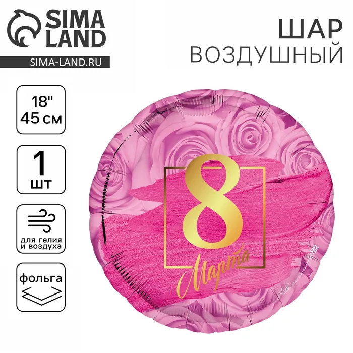 Воздушный шар фольгированный 18" «8 марта», круг — Характеристики