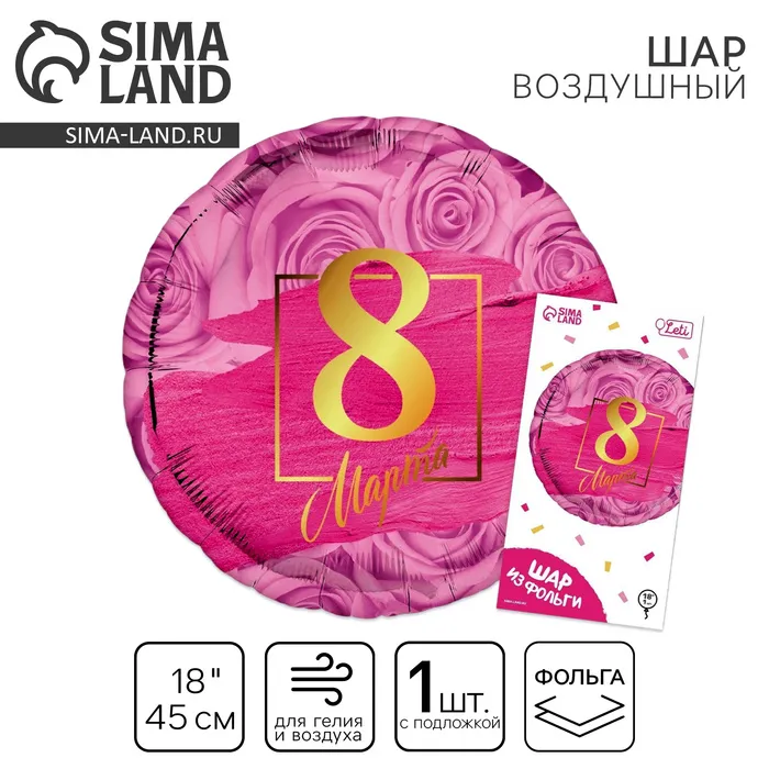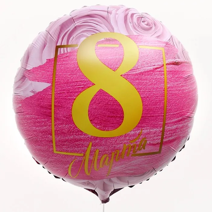 Воздушный шар фольгированный 18" «8 марта», круг, с подложкой — Характеристики