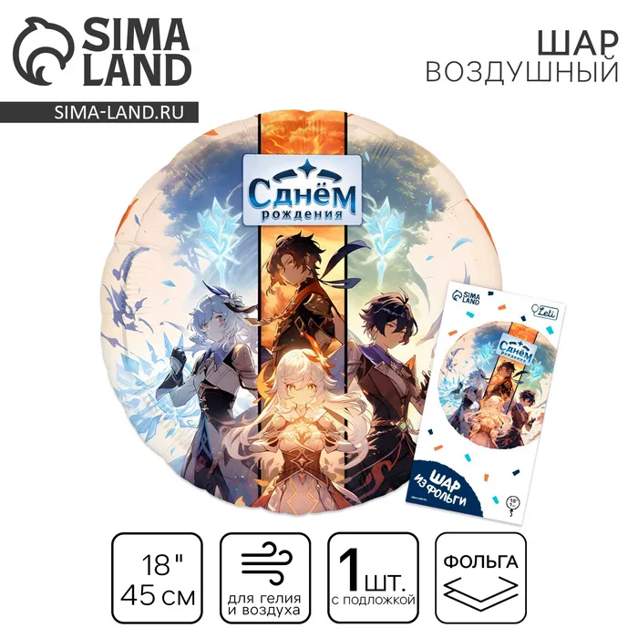 Воздушный шар фольгированный 18" «Аниме. С днём рождения», круг, с подложкой — Характеристики