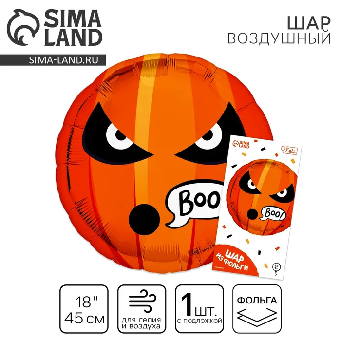 Воздушный шар фольгированный 18" «Буу», круг, с подложкой — Характеристики