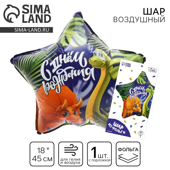 Воздушный шар фольгированный 18" «Дино», звезда, с подложкой — Характеристики