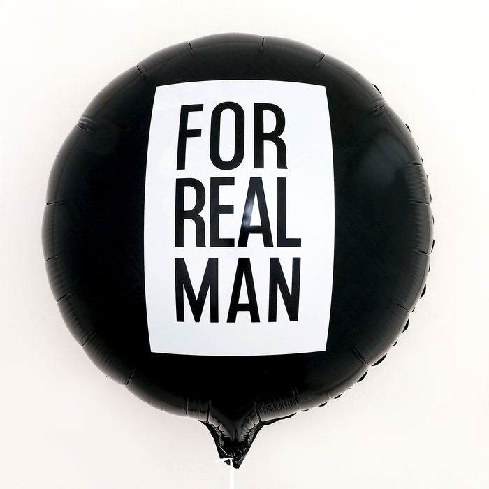 Стильный фольгированный шар в виде круга с надписью For real man («Для настоящего мужчины») отлично подойдёт для оформления праздника на День защитника Отечества, день рождения или любой другой праздник. Шар классического чёрного цвета, его легко можно сочетать с другими оттенками. Также шар подойдёт в качестве дополнения к подарку. Вручите один или несколько шаров тому, у кого праздник.