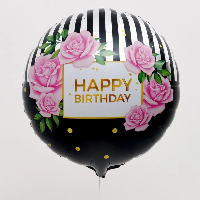 Фольгированный шар в виде круга с надписью «Happy birthday» — дополнение, которое подойдёт к любому подарку! Вы можете взять несколько шаров и соорудить из них арку или гирлянду. Воздушные шары — простой и удобный способ оформить помещение для мероприятия.
