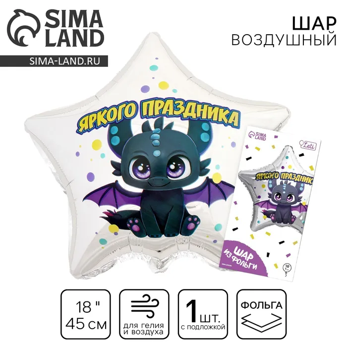 Воздушный шар фольгированный 18" «Яркого праздника», звезда, с подложкой — Характеристики