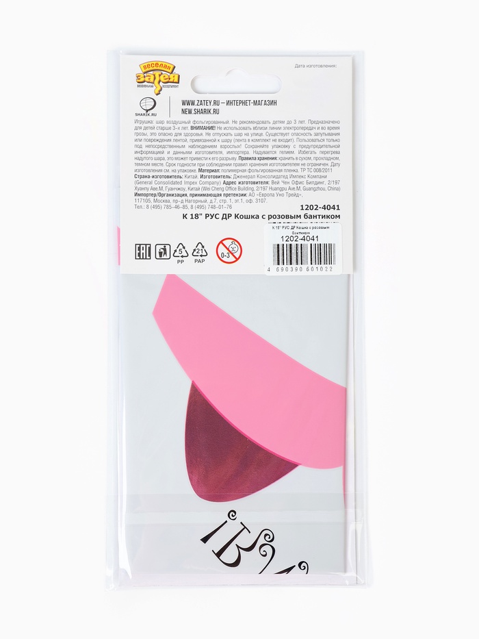 Воздушный шар фольгированный 18" «Кошка с розовым бантом» — Характеристики