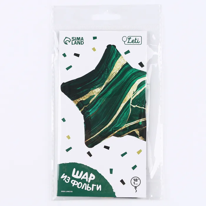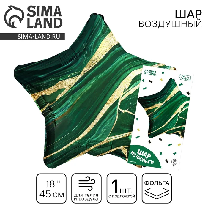 Шар из фольги в форме звезды выглядит стильно и современно. Его дизайн напоминает узор камня малахит. С помощью шаров можно легко оформить помещение для праздника. Шары можно подвесить под потолок или разложить по полу, собрать из них букет или прикрепить к стене.