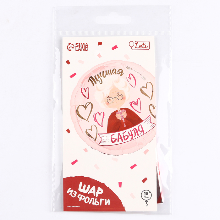 Воздушный шар фольгированный 18" «Лучшая бабуля», круг, с подложкой — Характеристики