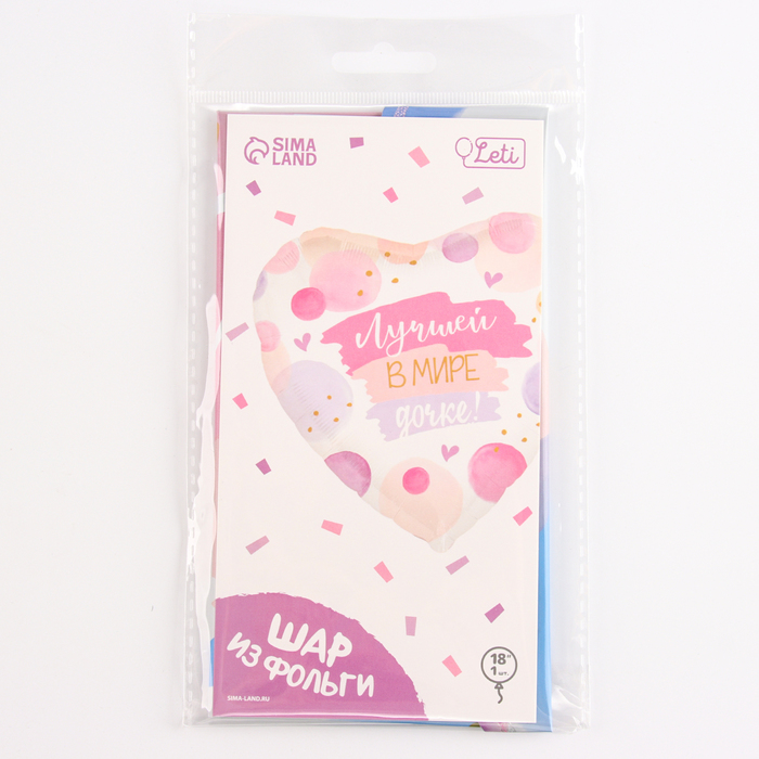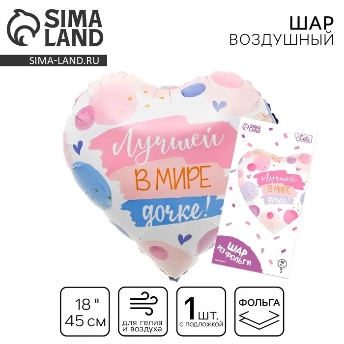 Воздушный шар фольгированный 18" «Лучшей в мире дочке», сердце, с подложкой — Характеристики