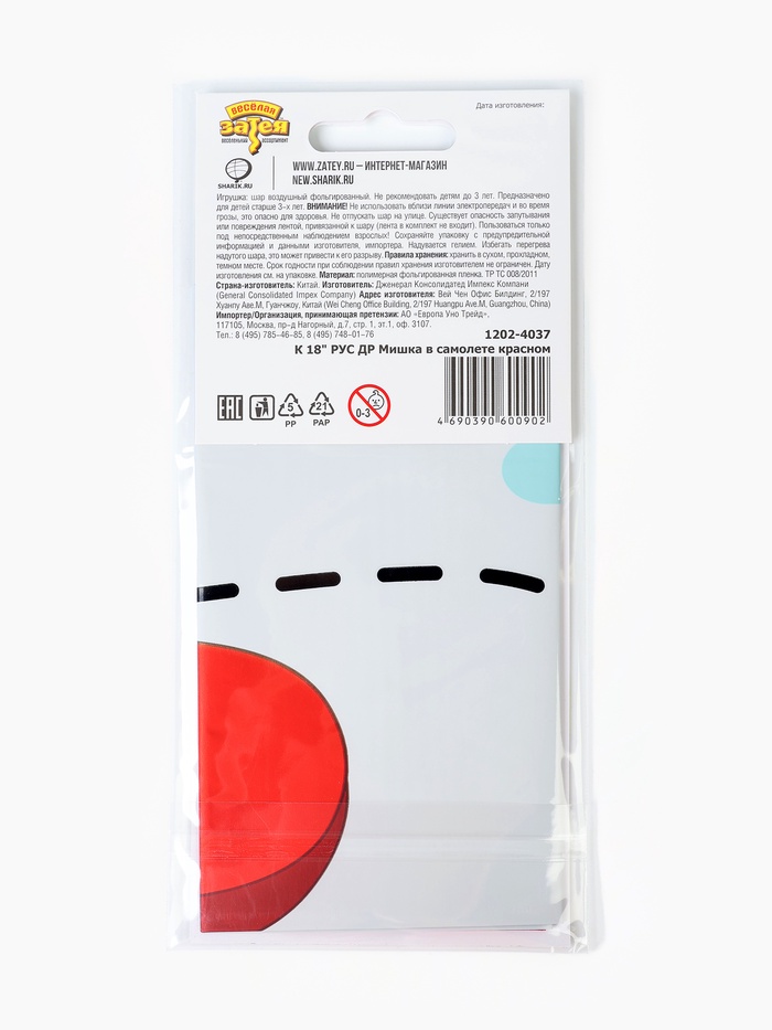 Воздушный шар фольгированный 18" «Мишка в красном самолете» — Характеристики