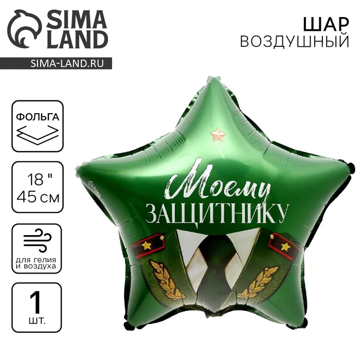 Воздушный шар фольгированный 18" «Моему защитнику», звезда — Характеристики