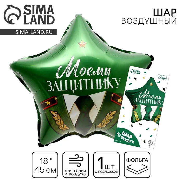 Воздушный шар фольгированный 18" «Моему защитнику», звезда, с подложкой — Характеристики