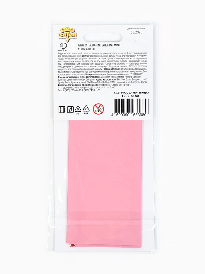Воздушный шар фольгированный 18" «Моя ягодка, с ДР» — Характеристики