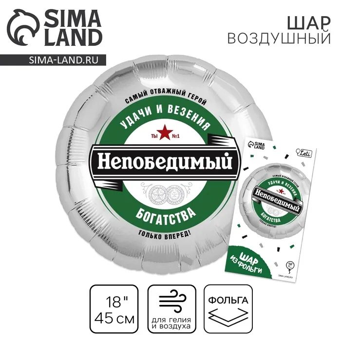 Воздушный шар фольгированный 18" «Непобедимый», круг, с подложкой — Характеристики