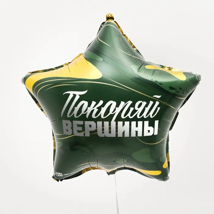 Шар из фольги в виде звезды с надписью «Покоряй вершины» подойдёт в качестве дополнения к подарку на любой праздник, например, на День рождения или на День защитника Отечества. Мотивирующая надпись подарит множество положительных эмоций!