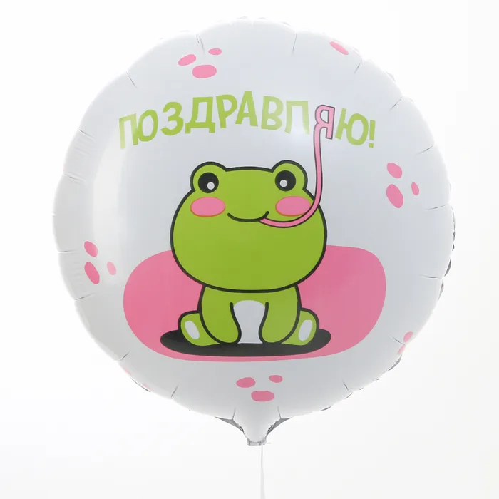 Фольгированный шар с надписью: «Поздравляю!» и принтом с лягушкой — дополнение, которое подойдёт к любому подарку для ребёнка! Вы можете взять несколько шаров и соорудить из них арку или гирлянду. Воздушные шары — простой и удобный способ оформить помещение для мероприятия.