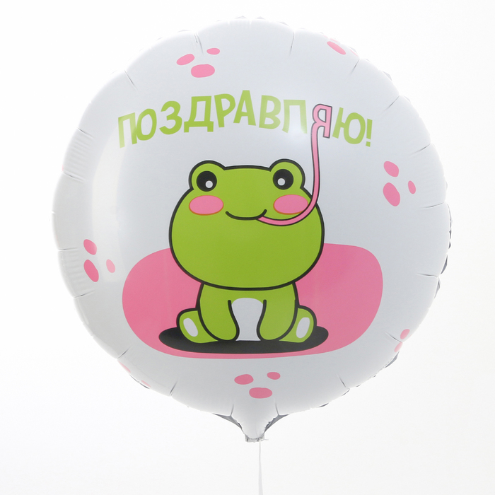 Воздушный шар фольгированный 18" «Поздравляю» лягушка, круг — Характеристики
