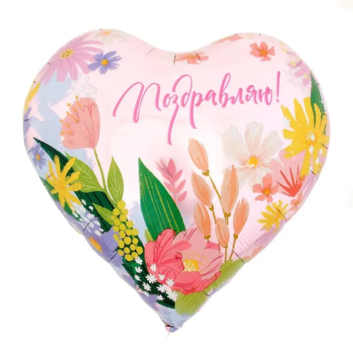 Фольгированный шар в виде сердца с надписью «Поздравляю!» — дополнение, которое подойдёт к любому подарку. Вы можете взять несколько шаров и соорудить из них арку или гирлянду. Воздушные шары — простой и удобный способ оформить помещение для мероприятия.