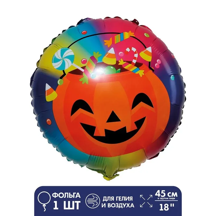 Шар фольгированный 18" «Радостная тыква» — идеальный выбор для создания атмосферы на Хэллоуин или тематическую вечеринку. Этот шар станет центральным элементом декора, подчёркивающим стиль мероприятия. Можно надувать и воздухом и гелием.