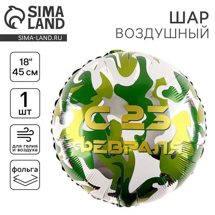 Воздушный шар фольгированный 18" «С 23 февраля», круг — Характеристики
