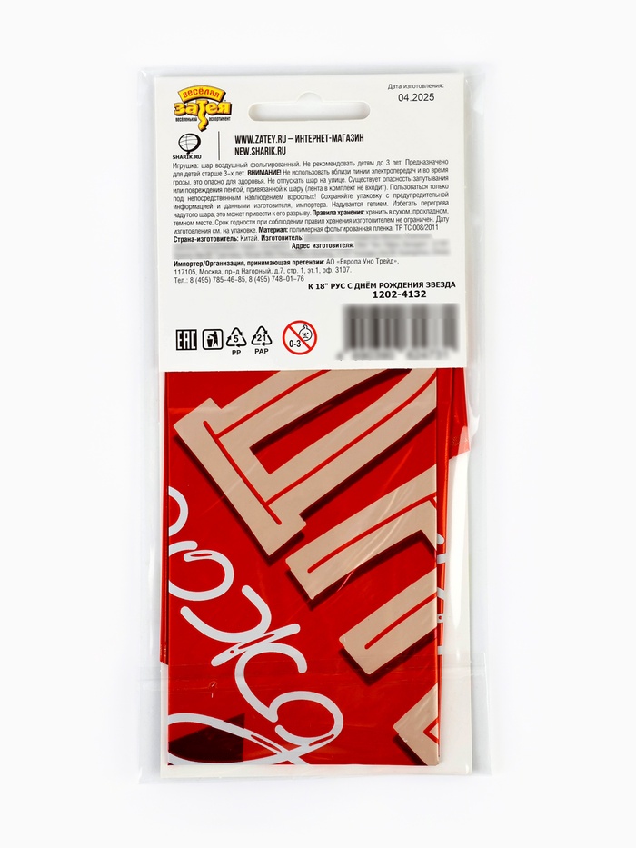 Воздушный шар фольгированный 18" «С днем рождения» — Характеристики