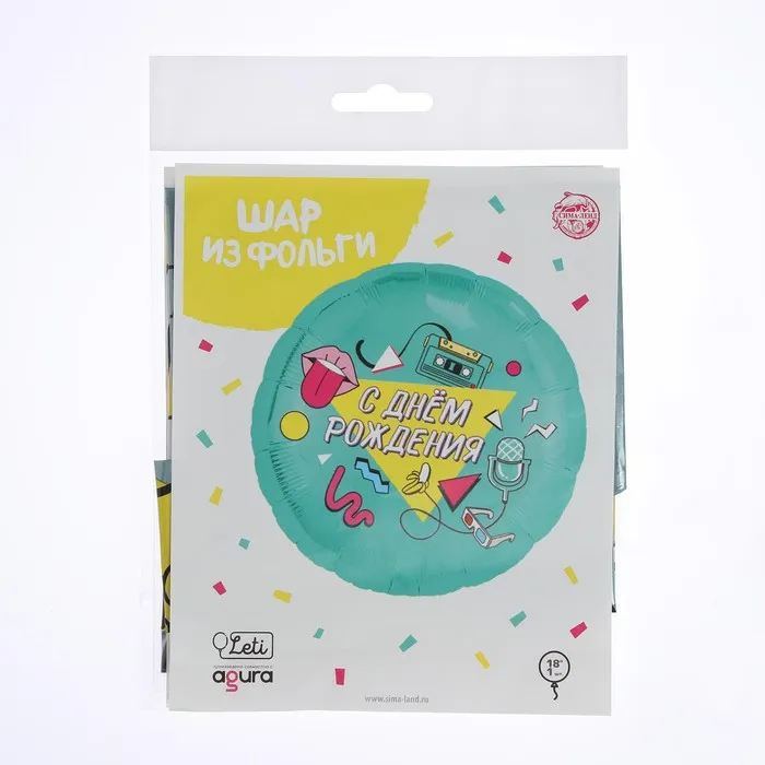 Воздушный шар фольгированный 18" «С Днём рождения. Диско», круг, с подложкой — Характеристики
