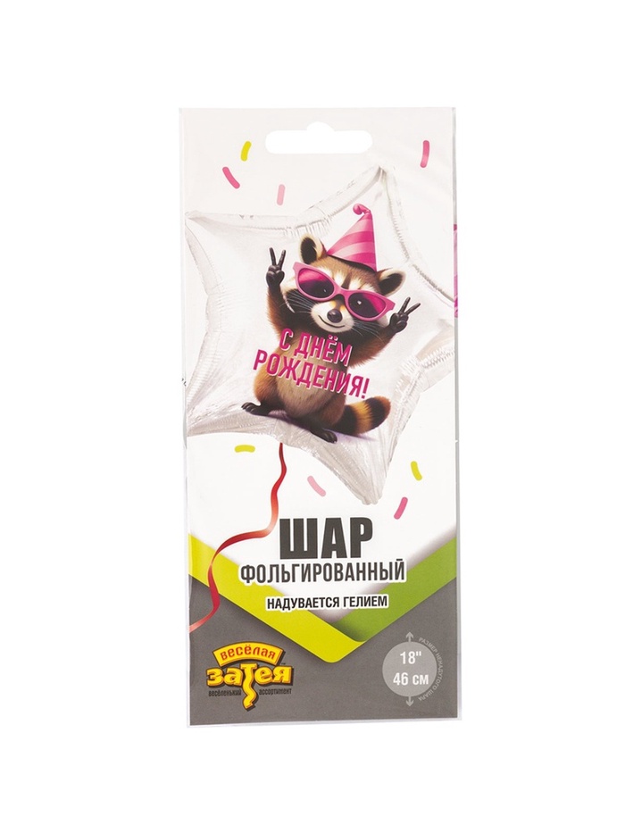 Воздушный шар фольгированный 18" «С днём рождения. Енот в колпаке. Звезда» — Характеристики