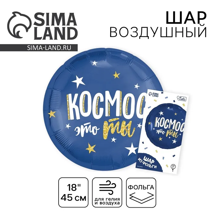 Воздушный шар фольгированный 18" «С Днём рождения. Космос», круг, цвет синий ,с подложкой — Характеристики