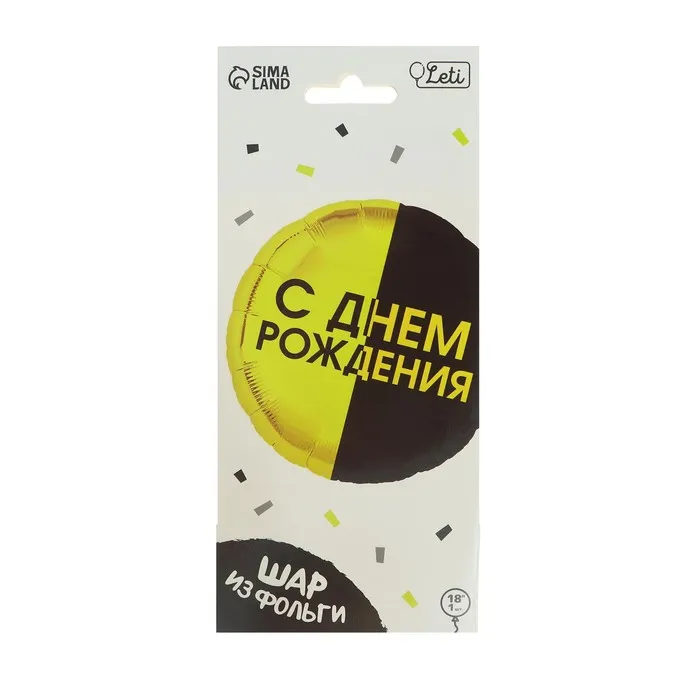 Воздушный шар фольгированный 18" «С днём рождения», круг, с подложкой — Характеристики