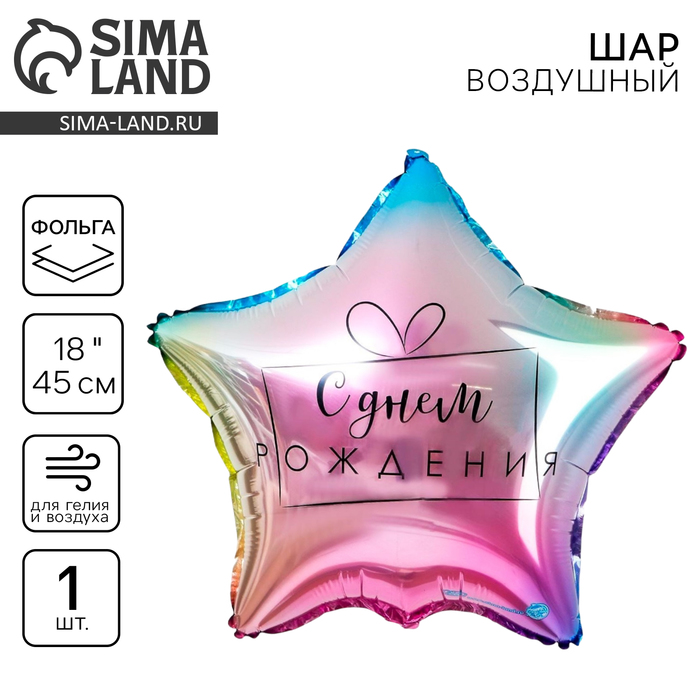Воздушный шар фольгированный 18" «С днём рождения», звезда, градиент — Характеристики