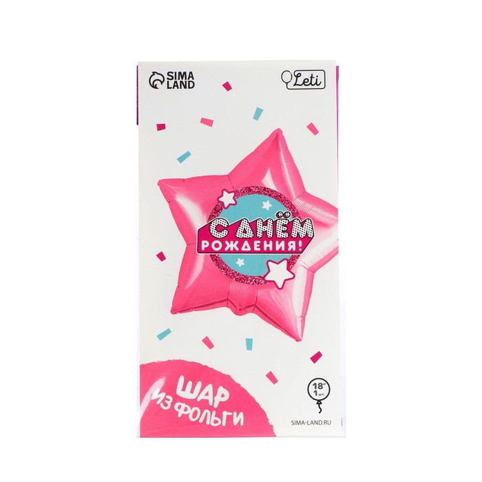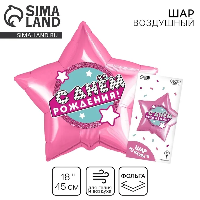 Воздушный шар фольгированный 18" «С днём рождения», звезда, с подложкой — Характеристики
