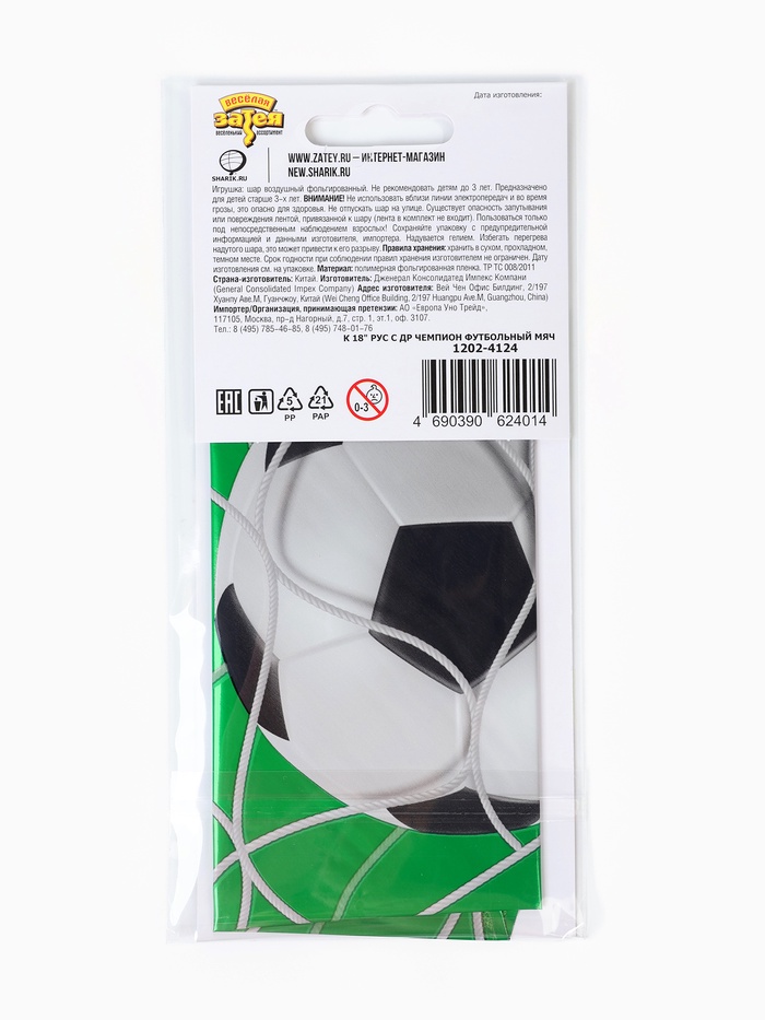 Воздушный шар фольгированный 18" «С ДР Чемпион, футбольный мяч» — Характеристики