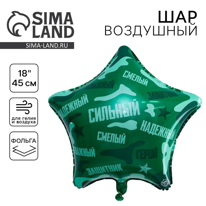 Воздушный шар фольгированный 18" «Сильный, надёжный!», звезда — Характеристики