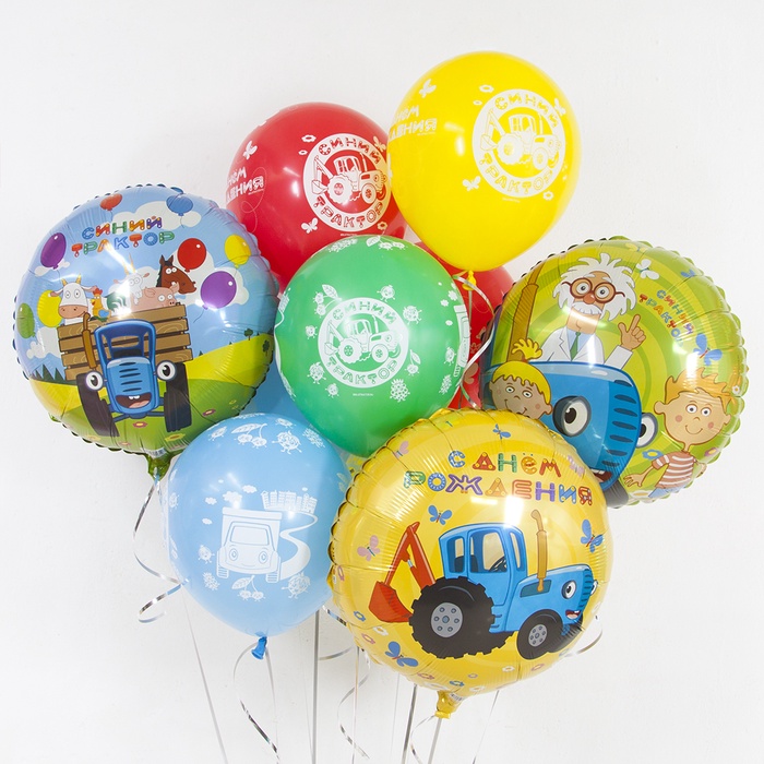 Воздушный шар фольгированный 18" «Синий трактор! С Днём Рождения!», набор 5 шт. — Характеристики